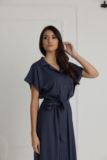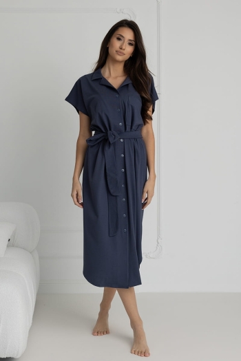 Długa koszula nocna na guziki Ingrid Deep Blue | Dolce Sonno