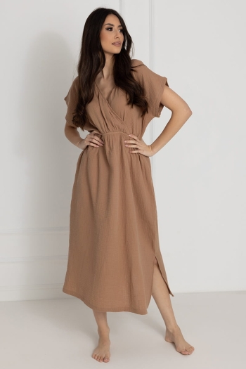 Długa koszula nocna muślinowa Izyda Słomkowa | Dolce Sonno