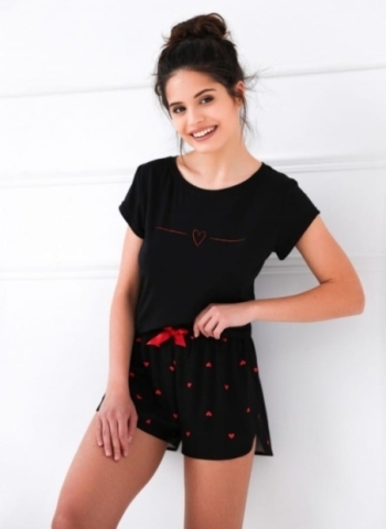 Piżama dzianinowa z krótkim rękawem Freya Czarna |...