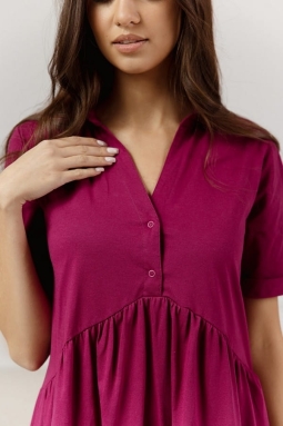 Koszula nocna w intensywnym kolorze fuksji, widoczna na zdjęciu, prezentuje się niezwykle urzekająco, emanując zmysłowym wdziękiem. Jej intensywny odcień dodaje energii i życia, podkreślając oryginalny styl noszącej ją kobiety.