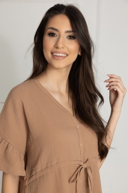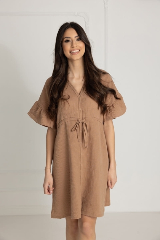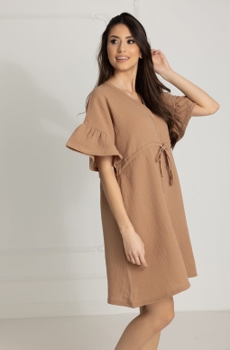 Muślinowa koszula nocna Celine dla kobiet w ciąży i mam karmiących w odcieniu Toffi