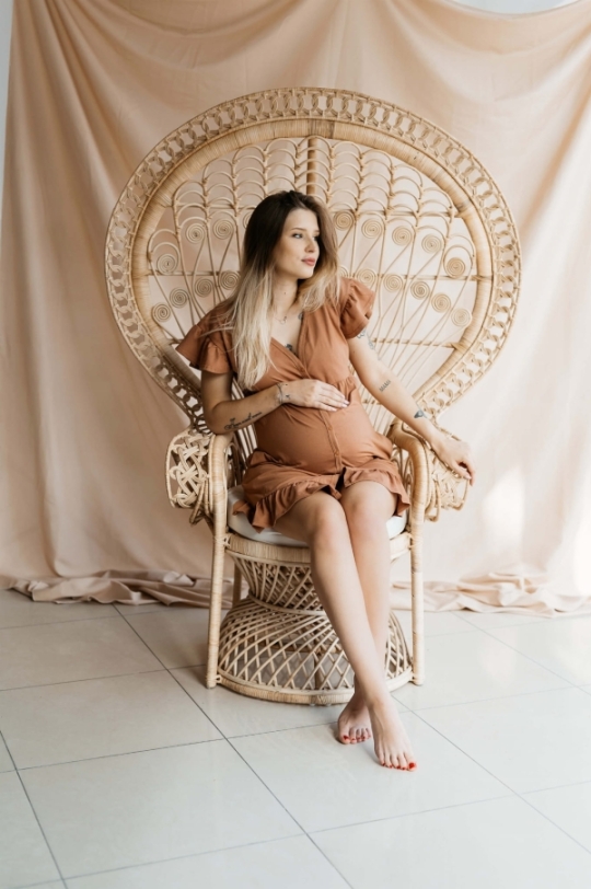 Koszula z uroczym wykończeniem w formie ozdobnej falbanki na ramionach oraz nad kolanami. Rozpinana po całej długości na wygodne napy pozwoli nie tylko dyskretnie nakarmić Malucha ale zapewni również komfortowe kangurownie noworodka w pierwszych tygodniach jego życia. Koszula nocna o kroju dziewczęcej sukienki z wygodnymi kieszeniami sprawdzi się również jako odzież w stylu homewear, tak abyś mogła poczuć się komfortowo i atrakcyjnie w tym wyjątkowym dla Ciebie okresie.