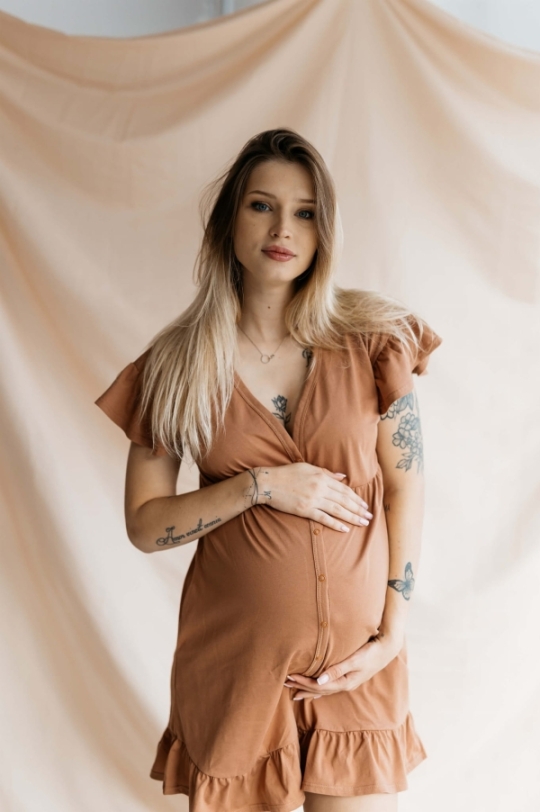 Koszula dla kobiet w ciąży i do karmienia z falbanką | Arica/Karmel - Dolce Sonno