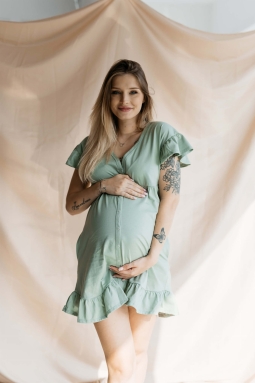 Koszula nocna ciążowa do karmienia z falbankami Arica Szałwia | Dolce Sonno