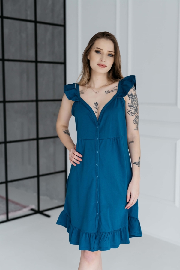 Subtelna i bardzo dziewczęca koszula nocna o kroju sukienki, świetnie sprawdzi się zarówno podczas karmienia nocnego, jak również w ciągu dnia, jako odzież w stylu homewear.