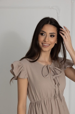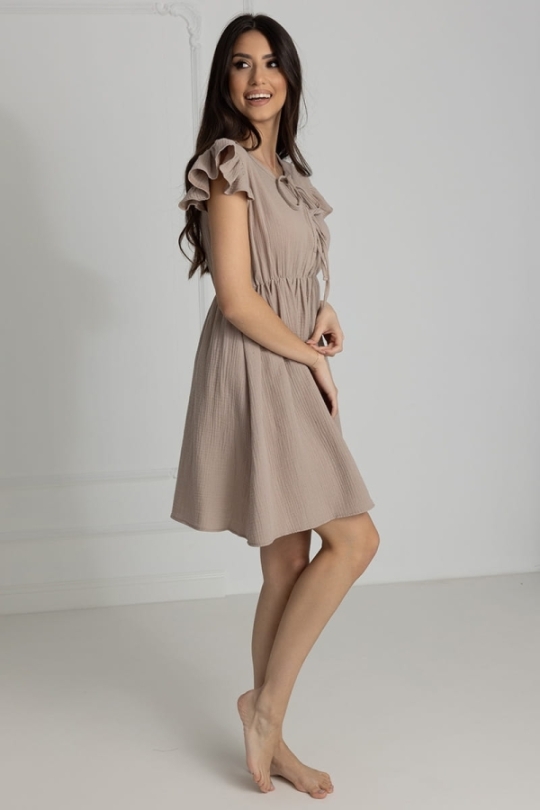 Koszula muślinowa ciążowa do karmienia na ramiączkach Salome Mocca | Dolce Sonno
