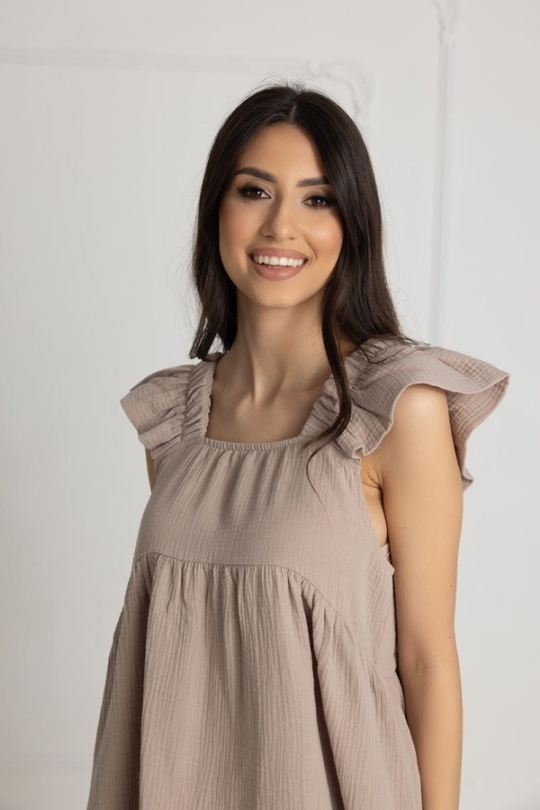 Koszula muślinowa ciążowa do karmienia na ramiączkach Flavia Mocca | Dolce Sonno