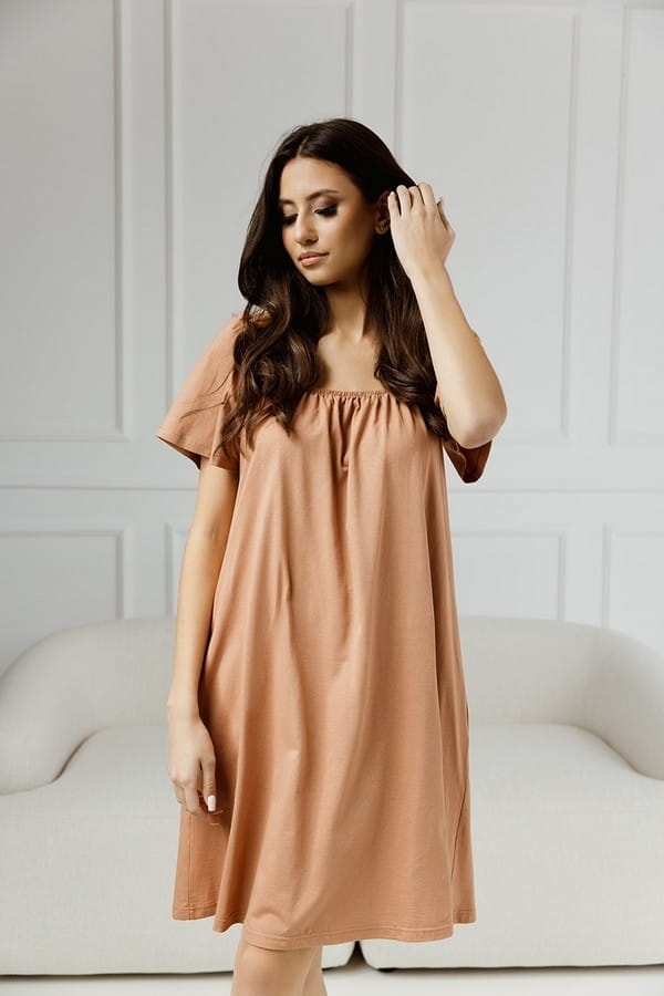 Koszula nocna damska z krótkim rękawem Parma Karmel | Dolce Sonno