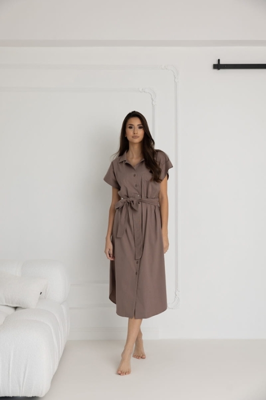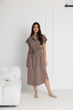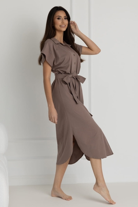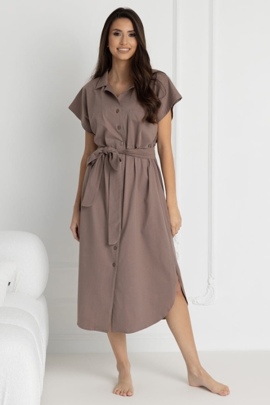 Długa koszula nocna na guziki Ingrid Taupe | Dolce Sonno