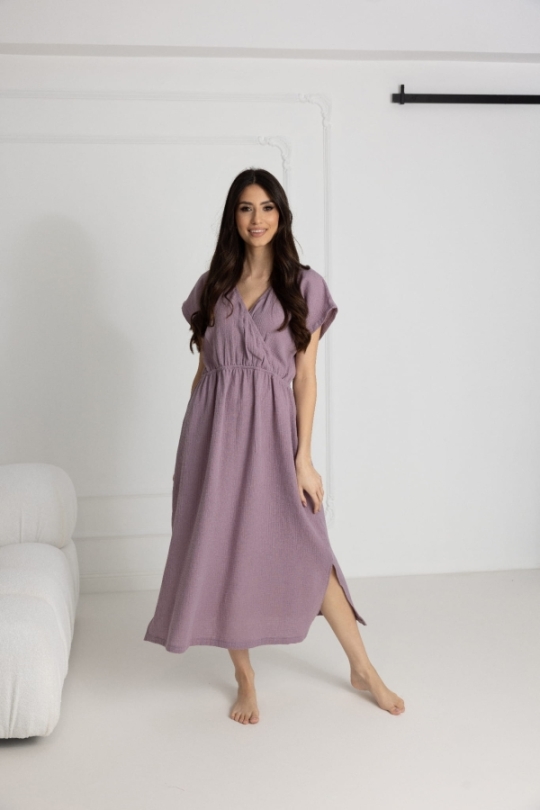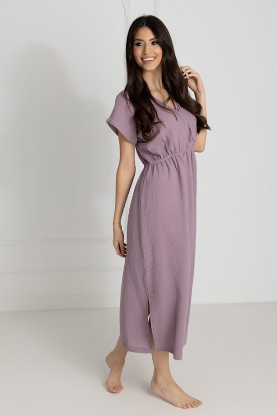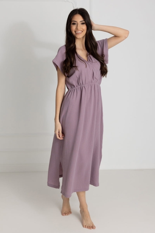 Długa koszula nocna muślinowa Izyda Lawenda | Dolce Sonno
