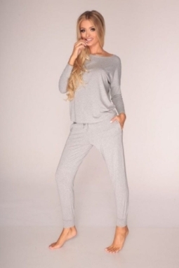 Dzianinowa piżama / komplet damski Paula – jasny szary | DeLafense