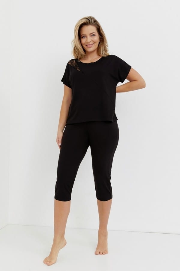 Wiskozowa piżama damska z koronką Velar – czarna | DeLafense