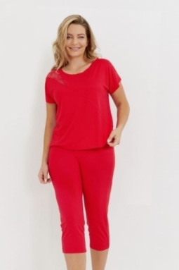 Piżama damska z delikatnej wiskozy Velar Czerwona | DeLafense 740