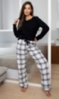 Spodnie uszyte z miękkiej flaneli w modną kratę – ponadczasowy wzór idealnie łączący się z gładką górą piżamy. Krój zapewnia pełną swobodę ruchów, a wygodna gumka w pasie dostosowuje się do sylwetki.