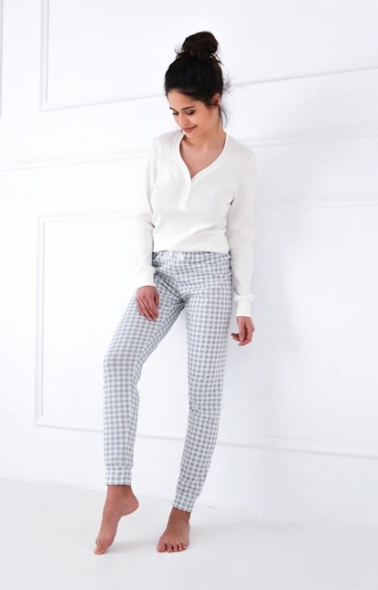 Piżama damska z długim rękawem i spodniami w kratę Desire | Sensis