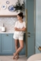 Bawełniana piżama damska z krótkim rękawem ecru-beż Jemma od Sensis