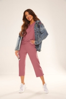 Koszulka z krótkim rękawem jest doskonała na ciepłe letnie noce, daje swobodę ruchów i przyjemne uczucie na skórze. Spodnie o długości 7/8 to modny dodatek, zapewniający lekkie osłonięcie i wygodę. Delikatne prążkowanie nadaje im stylowego wyglądu.