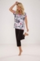Koszulka z krótkim rękawem z klasycznym dekoltem w kształcie litery V dodaje subtelnej elegancji. Ozdobiona nadrukiem i kwiatowym motywem, dodaje uroku i delikatności.