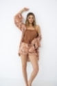 Koszulka na wąskich, regulowanych ramiączkach pozwala na idealne dopasowanie, a dekolt ozdobiony efektowną koronką dodaje subtelnej elegancji. Do kompletu krótkie spodenki z gumką w pasie.