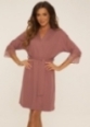 Dzięki krótkiemu krojowi i wiązanemu pasowi szlafrok doskonale dopasowuje się do sylwetki, podkreślając jej naturalne piękno. Rękawy o długości 7/8 dodają lekkości, a koronkowe wykończenie nadaje eleganckiego i romantycznego charakteru.