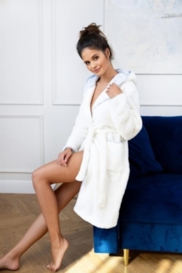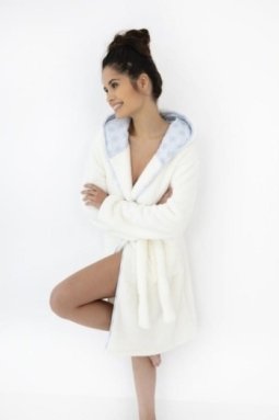 Szlafrok Josefina to połączenie komfortu i elegancji, idealny na chłodniejsze dni. Wykonany z miłej, miękkiej dzianiny typu soft, zapewnia wyjątkowy komfort noszenia. Szlafrok wyposażony w kaptur chroniący przed chłodem.