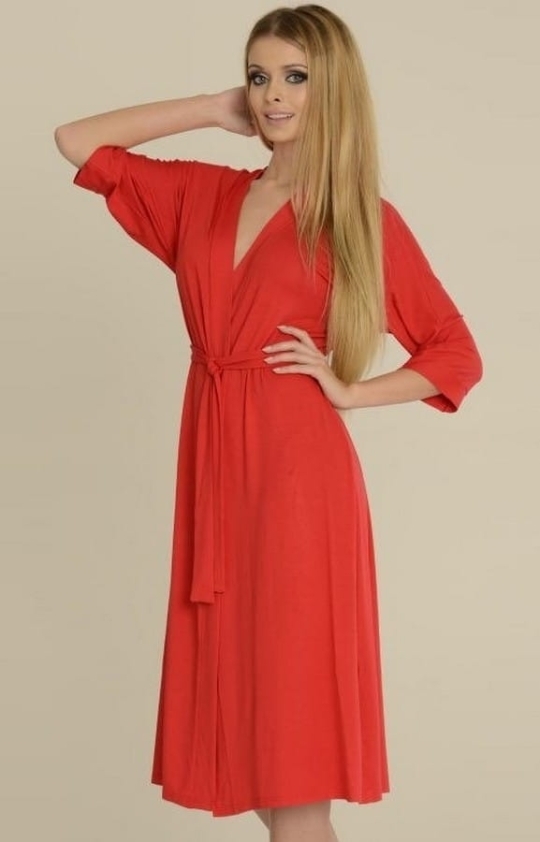 Długi szlafrok damski z delikatnej dzianiny Visa – Czerwony | DeLafense