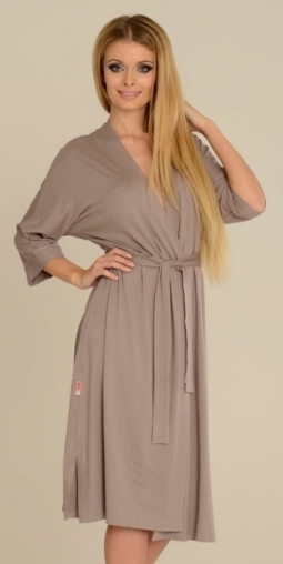 Długi szlafrok damski Visa Mocca z dzianiny | DeLafense 942